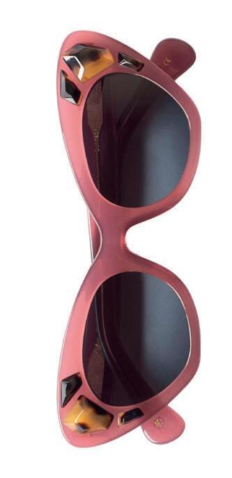 2. De silueta cat-eye. Con piedras sobre fondo frambuesa translúcido, de Kaleos (205 €).
