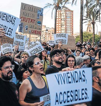 Esto ha provocado que más del 95% de los pisos anunciados para alquilar en grandes ciudades como Barcelona, Madrid y Valencia superen el límite máximo de renta a pagar para poder acceder a la ayuda. En esas tres ciudades, los precios medios están por encima de los 1.000 euros para pisos de 75 metros cuadrados –1.530 euros en Madrid, 1.680 en Barcelona y 1.073 en Valencia–. En Valencia hubo una manifestación el pasado sábado, que continuó ayer en forma de acampada ante