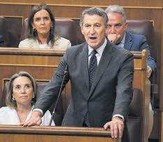 «valores» y «coherencia» porque en su momento apoyó una moción de censura, la de Rajoy, por una «causa que, comparada con el conjunto de causas que hay en este momento, se consideraría menor». Por otro, se dirigió a Junts cuestionando el trato recibido por parte del PSOE al haber mandado a Santos Cerdán a negociar con ellos. El líder popular aseguró que «no aceptará ninguna propuesta que no sea que Sánchez dimita». «Lo que tiene que hacer es contar lo que ha pasado y que nos diga cuántos corruptos más hay en su partido», sentenció tras exigir su dimisión». l BELÉN SARRIÁ