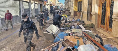 29-O acabó repleta de enseres y escombros arrastrados por la riada Policía y voluntarios trabajaron en retirar los muebles y electrodomésticos acuvolver a transitar por las calles de Algemesí con sus vehículos.