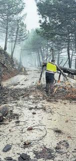 O 3 Una jornada intransitable. Un operario trabaja para retirar las ramas y árboles de una carretera de la provincia de Málaga, una de las muchas afectadas por las lluvias y, sobre todo, las rachas de viento.