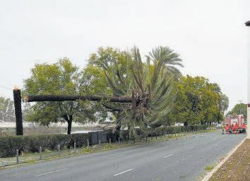 O 1 Arterias de Sevilla cortadas. Un árbol de grandes dimensiones obligó ayer a cortar al tráfico rodado y peatonal en la calle Alberto Jiménez Becerril, que se mantuvo cerrada durante gran parte de la mañana. También hubo incidencias de este tipo en San Jacinto y la avenida de la Palmera, entre otras vías.