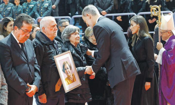 Al término del acto, que duró casi dos horas, Felipe VI y Letizia se acercaron a los familiares de las víctimas para darles el pésame. Los Reyes saludaron cariñosamente a niños que se encontraban en sillas de ruedas y a otros heridos. También se acercaron a Fidel, igualmente hijo de Natividad de La Torre, y a la abuela de la niña de seis años que sobrevivió a la tragedia. Otras autoridades también saludaron a los presentes, mientras se oían aplausos y gritos de «Viva el rey, viva la reina». l