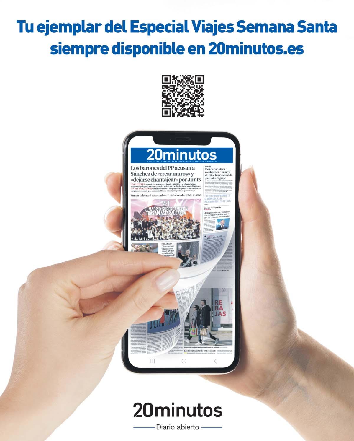 lectores@20minutos.es Imprimen Henneo Print S.L., S.L.U. Bermont, C. G. Penibética. y CREA Depósito Legal: SE 89-2023 PUBLICIDAD (ALAYANS) Jesús Aspra Rodríguez Director General, Carolina Luengo Responsable Comercial Madrid, Mercé Borastero Directora Comercial Barcelona, María Dolores Gallart Directora Comercial Valencia. Tel.: 91 701 56 00 Coordinación y Tráfico Rafael Martín Operaciones Héctor Mª Benito. Administración Luis Oñate Madrid Calle Canarias, 49. 28045 Madrid. Tel.: 91 701 56 00 Barcelona Passeig de Gràcia, 11. 08007 BCN. Tel.: 93 470 62 50 Valencia Avda. Cortes Valencianas 41. 46015 Valencia Tel.: 96 350 93 38 Andalucía sevilla@20minutos.es Directora Encarna Samitier Director adjunto Jesús Morales Subdirectores: Raúl Rodríguez y Alex Herrera Redactores jefe: Chema R. Morais, Melisa Tuya, Héctor M. Garrido Coordinadora cierre: Susana Gozalo Coordinador Seo: Armando Hueso Multimedia: Jorge París © 20 Minutos Editora, S.L. Todos los derechos reservados. Adicionalmente, a los efectos establecidos en los artículos 32.1 y 33.1 de Ley de Propiedad Intelectual, 20 Minutos Editora, S.L. hace constar, respectivamente, la correspondiente oposición y reserva de derechos, por sí y por medio de sus redactores o autores. HENNEO MEDIA. S. A. Presidente Fernando de Yarza López-Madrazo Consejero Delegado: Iñigo de Yarza López-Madrazo Director Editorial y de Comunicación: Miguel Ángel Liso Tejada INNOVACIÓN DIGITAL Miguel Madrid Cruz Una publicación de 20 MINUTOS EDITORA, S. L. 20MINUTOS —Jueves, 7 de marzo de 2024 15