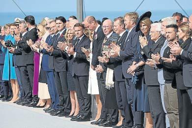 El presidente Biden saluda a su homólogo ucraniano, Zelenski, ayer, en uno de los actos de homenaje por el Día D. C. PETIT TESSON / EFE