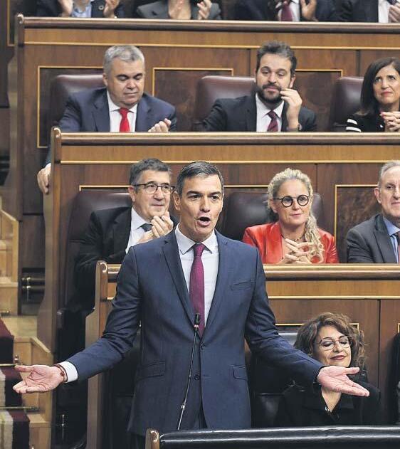 lo hizo en respuesta a Feijóo, sino a la portavoz de Podemos, Ione Belarra. En ello reparó el vicesecretario del Partido Popular, Elías Bendodo: «Después de muchas sesiones de control el presidente ha salido a defenderse, no a atacar. Por algo será». El presidente del Gobierno también pidió a Feijóo que «se tape un poco» porque «de la A de Ayuso a la Z de Zaplana, el PP tiene un caso de corrupción por cada letra del abecedario». «No todos los partidos políticos somos iguales. En el PSOE quien la hace, la paga; en el suyo cuando alguien denuncia un caso de corrupción se le echa, como a Casado», le afeó. Sobre la querella también se pronunció el ministro de la Presidencia, Félix Bolaños, quien dijo que se basa en un «bulo». «¿Hay mención en el informe de la UCO? Ninguna, pero aquí está la noticia falsa. PP y Vox lo usan, dan por hecho la invención». ● M. M. / B. S.