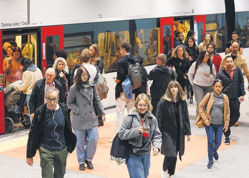 Usuarios de Metrovalencia, ayer, tras descender de un convoy en la céntrica estación de Xàtiva. ANA ESCOBAR / EFE