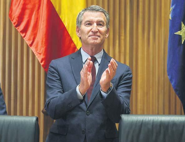 «La vía para que el PSOE vuelva a la Constitución es que pase a la oposición» El PP organizó ayer un coloquio en el Congreso por el Día de la Constitución, donde Feijóo afirmó que «la vía para que el PSOE vuelva a la Constitución es que pase a la oposición», aludiendo a la «amnistía, pacto de presos, amenazas a la prensa libre o uso presuntamente delictivo de la Fiscalía». FOTO: EFE