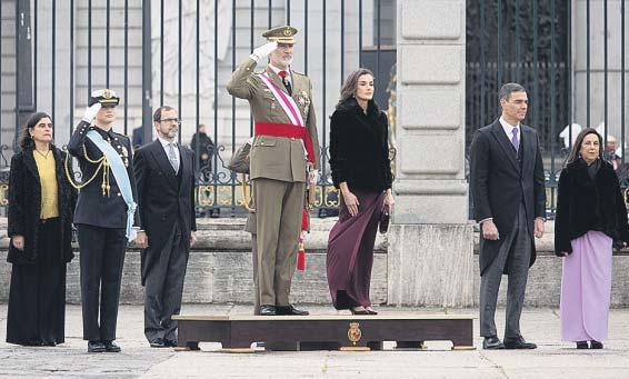 El Palacio Real de Madrid acogió ayer la Pascua Militar, un acto solemne para inaugurar el año castrense que, en esta ocasión, estuvo centrado en la labor de las Fuerzas Armadas durante la catástrofe de la DANA. El rey Felipe VI ensalzó su papel como «elemento esencial de la acción del Estado» y de «apoyo» a las administraciones públicas ante emergencias como la que asoló a la Comunidad Valenciana el pasado mes de octubre. Por su parte, la ministra de Defensa, Margarita Robles, aseguró que «España está orgullosa de sus Fuerzas Armadas, que estarán en Valencia el tiempo que sea necesario». Además, fijó la reconstrucción de las localidades y la satisfacción de las necesidades de los afectados como la prioridad de su departamento en este 2025. El acto estuvo presidido por los Reyes junto con la princesa Leonor, que vistió el uniforme de guardiamarina a días de embarcar en el buque escuela Juan Sebastián Elcano para continuar con su formación. «Experiencia, querida Leonor, que seguramente quedará, como me pasó a mí, entre tus mejores recuerdos de la formación militar», fueron las palabras dedicadas por su padre en la segunda Pascua en la que participa como militar y heredera a la Corona.