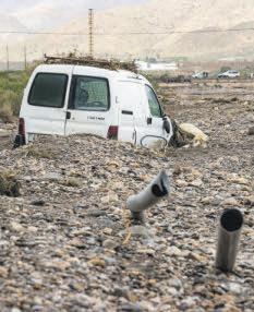 Dos mujeres pasan junto al barranco del Poyo, ayer, a la altura de Catarroja (Valencia). JORGE GIL / EP