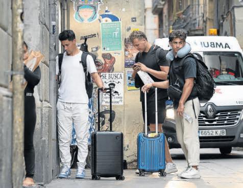 Grupo de turistas esperando entrar en su alojamiento en Barcelona. EUROPA PRESS