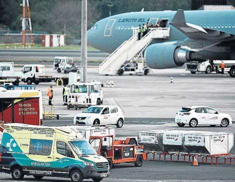 Álex García, que había enfermado durante unas vacaciones en Tailandia, fue trasladado en un avión medicalizado enviado por el Ministerio de Defensa que llegó en la tarde de ayer y posteriormente fue ingresado en el hospital vizcaíno de Cruces. El estado del paciente era estable después del viaje. Pág. 7