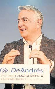 Los populares consiguieron ayer su «principal propósito», que era crecer. El PP logró siete escaños, uno más que en las pasadas elecciones, pero con la diferencia de que hace cuatro años se presentó en coalición con Ciudadanos, y el reparto era de cuatro populares y dos de Cs. El candidato del PP vasco, Javier De Andrés, resaltó «la recuperación y el reposicionamiento del PP en el País Vasco». «La legislatura pasada empezamos con cuatro, esta arrancamos con siete. Casi cien mil vascos han apoyado al PP. Es verdad que todo nos parece poco, nos hubiera gustado más, pero la ley electoral es así», sostuvo De Andrés. Y es que los siete escaños se han dado gracias a una fuerte subida en votos: el PP llegó a los 96.700 sufragios, casi 36.000 más que hace cuatro años. El mejor resultado lo consiguió en Álava con cuatro, otros dos en Vizcaya y uno en Guipúzcoa. El otro objetivo tras recuperar votos era el de influir en la política vasca, pero el resto de resultados no acompañaron, por lo que sus votos no serán decisivos. Aun así, dijo que tienen «la mano tendida» de cara a un hipoté-