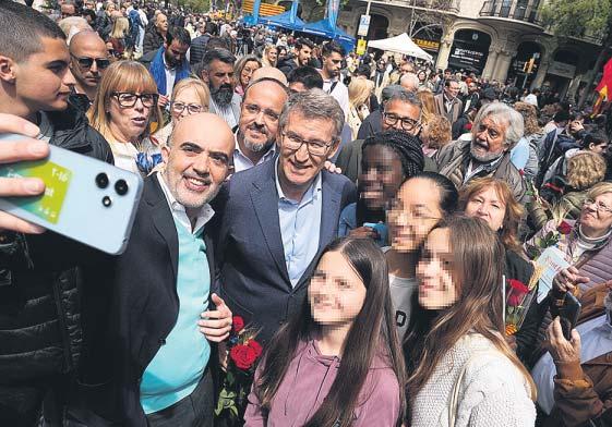 Alberto Núñez Feijóo acudió ayer a Barcelona a celebrar su segundo Sant Jordi como líder del PP. Pero esta vez lo hizo a pocos días de la pegada de carteles en Cataluña, donde avisó de que solo hay dos opciones: «procés o convivencia». Tras participar del festejo, recomendó al prófugo y candidato de Junts, Carles Puigdemont, leerse la Constitución, «que votó masivamente el pueblo de Cataluña» en las generales. Así,