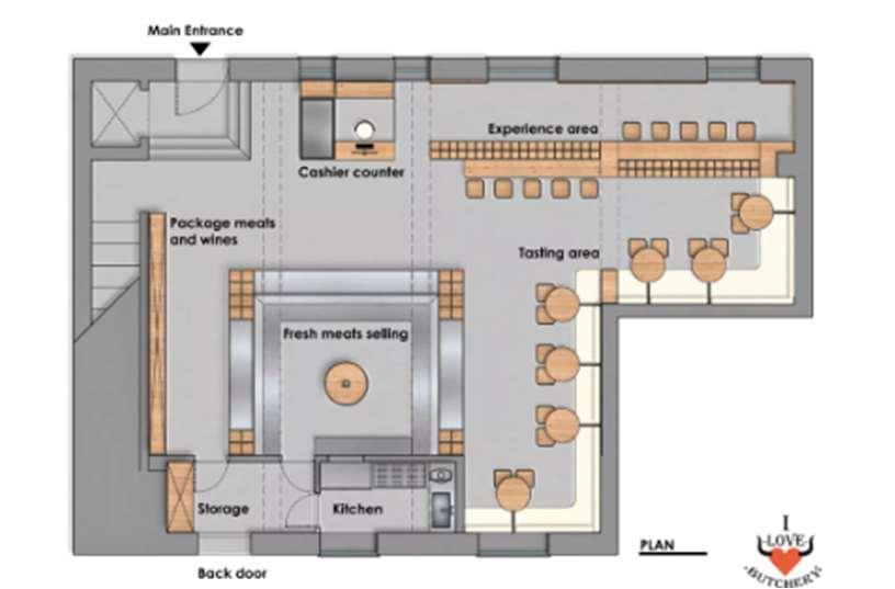 Uponenteringtheshopthecashcounterisplacedimmediatelyadjacenttothedoor.Thecustomersarenowgivenachoicetogostraighttowardsthemainbutcheryareatoget theirhandsonsomefreshlycutmostorrighttowardsthepre-cutmeatsandwines.Theycouldalsogotowardsthelefttotryoutsomedeliciouslycookedmeat.Thetastingarea isseparatedtomakeitmoreprivateandawayfromothercustomersandsightsofmeatbeingcut.Theinterioraestheticissimpleandelegantwithwoodensurfacescontrasting andbalancingwiththewhitewalls.