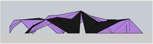 Afterconductingtestsonvariousmodels,I developedthebutterflycanopyintomyfinal design.Iusedmypreviousmodels;butterfly andscorpioncanopiesandtookthebestoutof themanddevelopedthisnewdesign.Itismade upoftwoidenticalsideseachmadeupofnonrepeatingirregulartriangularfacets.The symmetrymakesthecanopymoreaesthetic. Thedesignissustainableandtheroofhas plentyoffunctions.
