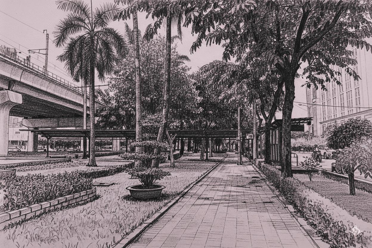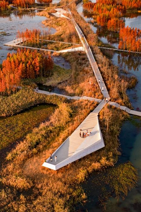 ĐỐI THOẠI GIỮA CÁI "CỨNG" CỦA HẠ TẦNG KỸ THUẬT (MẢNG XÁM) VÀ CÁI "MỀM" CỦA HỆ SINH THÁI TỰ NHIÊN (MẢNG XANH) ĐÃ XÓA NHÒA RANH GIỚI GIỮA KỸ THUẬT VÀ NGHỆ THUẬT.