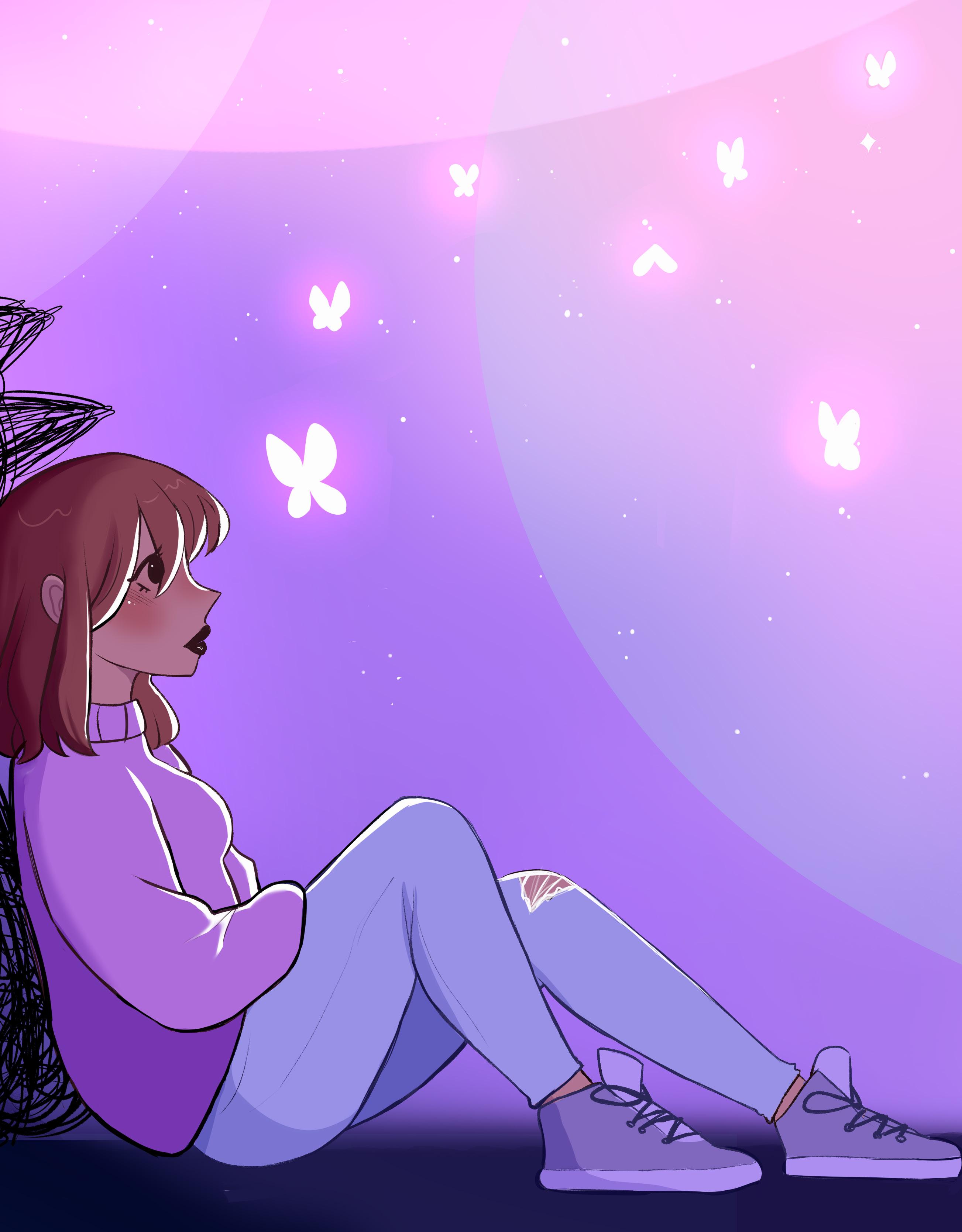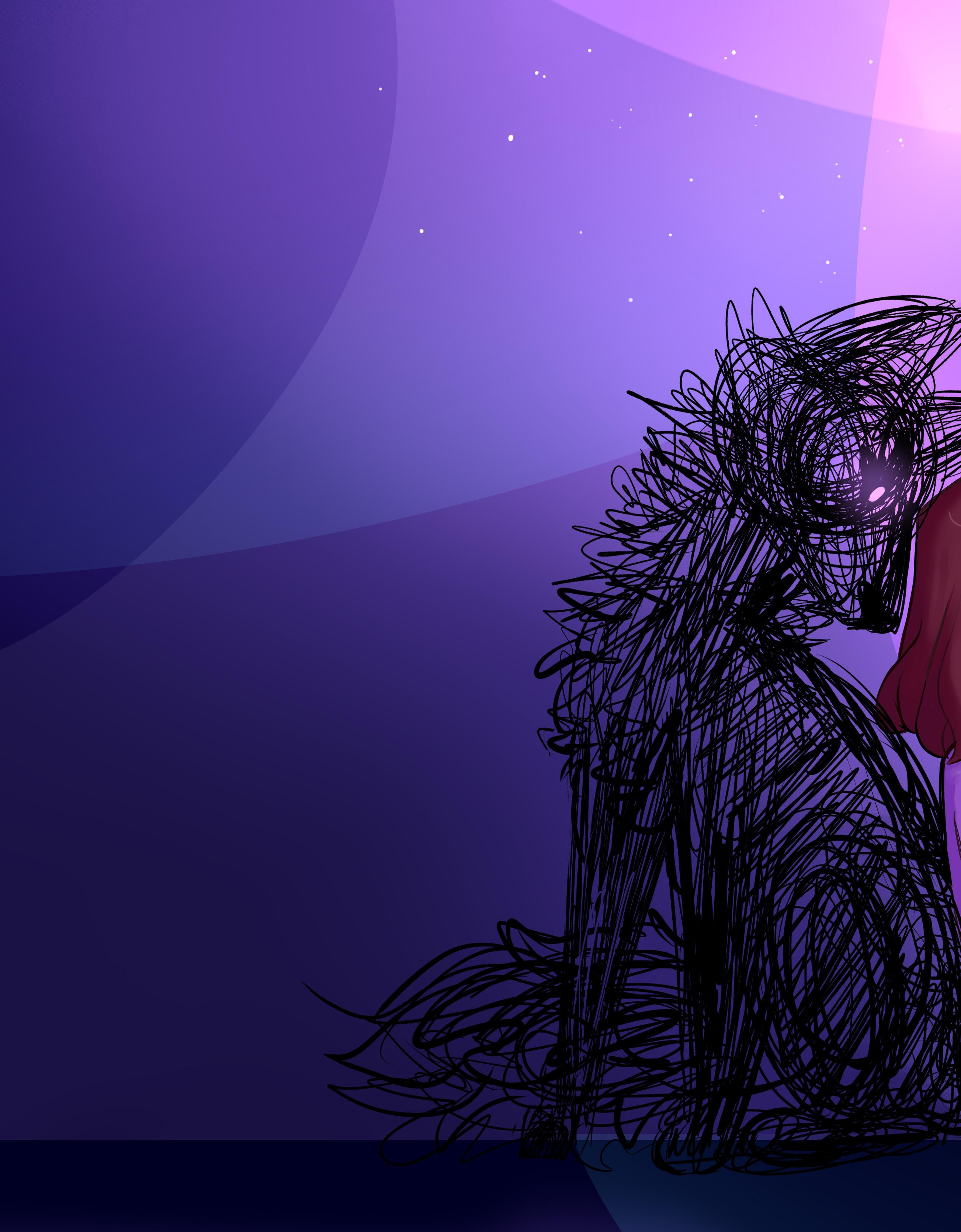 Calling my mom in the sky to feel safe Monsters creep in as my anxiety feeds on hugs.