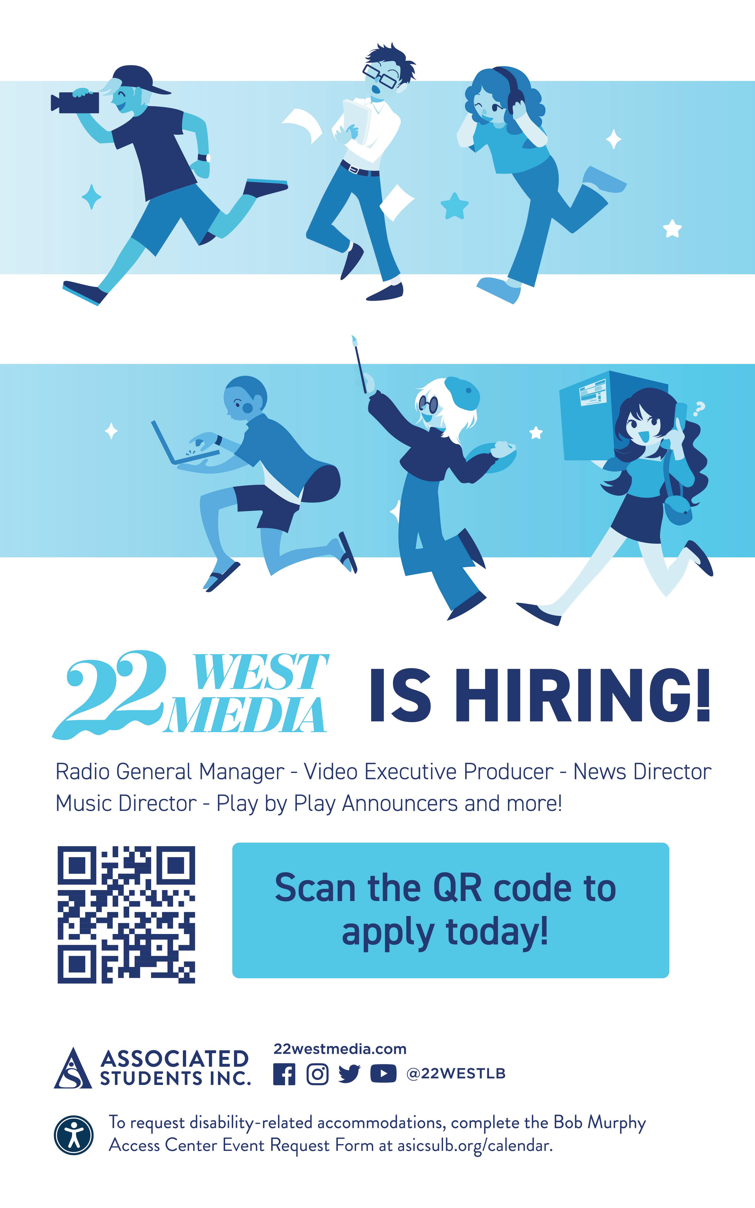 Disclaimer and Publication Information: 22 West Magazine is published using ad money and partial funding provided by the Associated Students, Inc. All Editorials are the opinions of their individual authors, not the magazine, ASI nor LBSU. All students are welcome and encouraged to be a part of the staff. All letters to the editor will be considered for publication. However, LBSUstudents will have precedence. Please include name and major for all submissions. They are subject to editing and will not be returned. Letters may or may not be edited for grammar, spelling, punctuation, and length. 22 West Magazine will publish anonymous letters, articles, editorials, and illustrations, but must have your name and information attached for our records. Letters to the editor should be no longer than 500 words. 22 West Magazine assumes no responsibility, nor is it liable, for claims of its advertisers. Grievance procedures are available in the Associated Students business office.