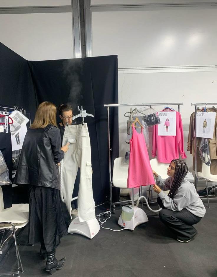 It would have features like AI mirrors for people to try on virtually, especially with the location of the event being inaccessible to proper changing rooms.