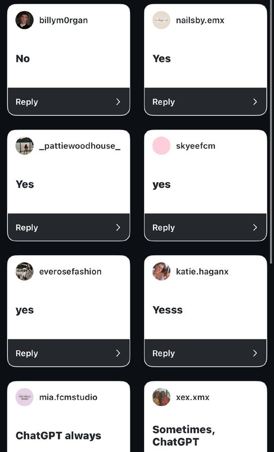 The use of AI is growing rapidly, especially within gen alpha. I asked Erin and Lila about AI and they are aware of the platform, they understand what it is and how to use it, but they don’t use it often and don’t feel the need to. I also asked my followers about their use of AI, lots of people said they use it alot or sometimes and they mostly use apps like ChatGPT for paraphrasing, general research or generating templates.