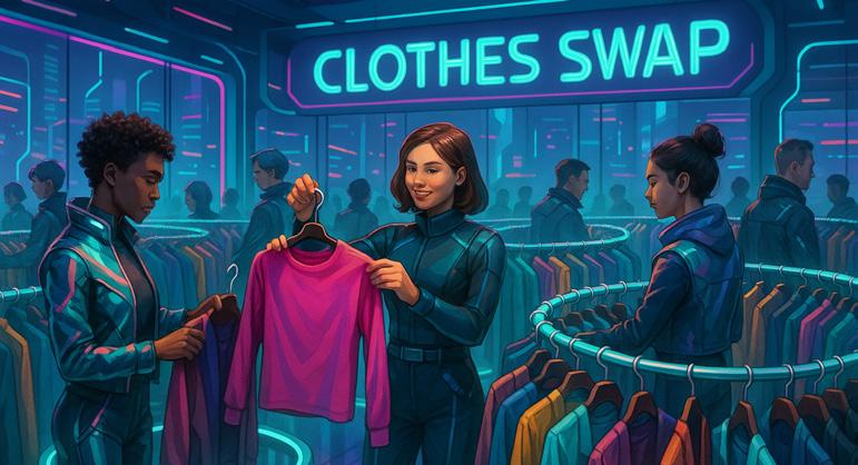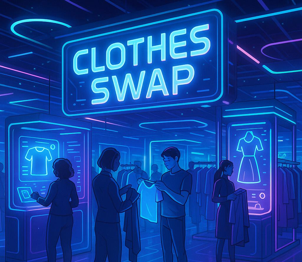 The event could be an annual occurence for people to come and swap their clothes, progressing each year with advanced technology and teaching us all new ways to be sustainable.