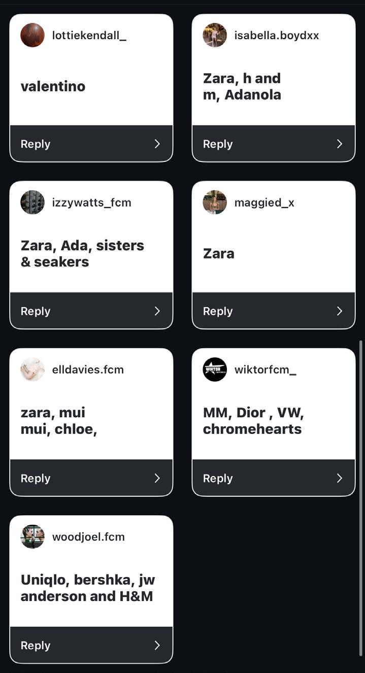 I asked my followers (mostly gen z) with an Instagram Q&A, what their favourite past and present trends are. Lots of answers were Isabel Marant high top sneakers, Balenciaga city bags, double denim etc.