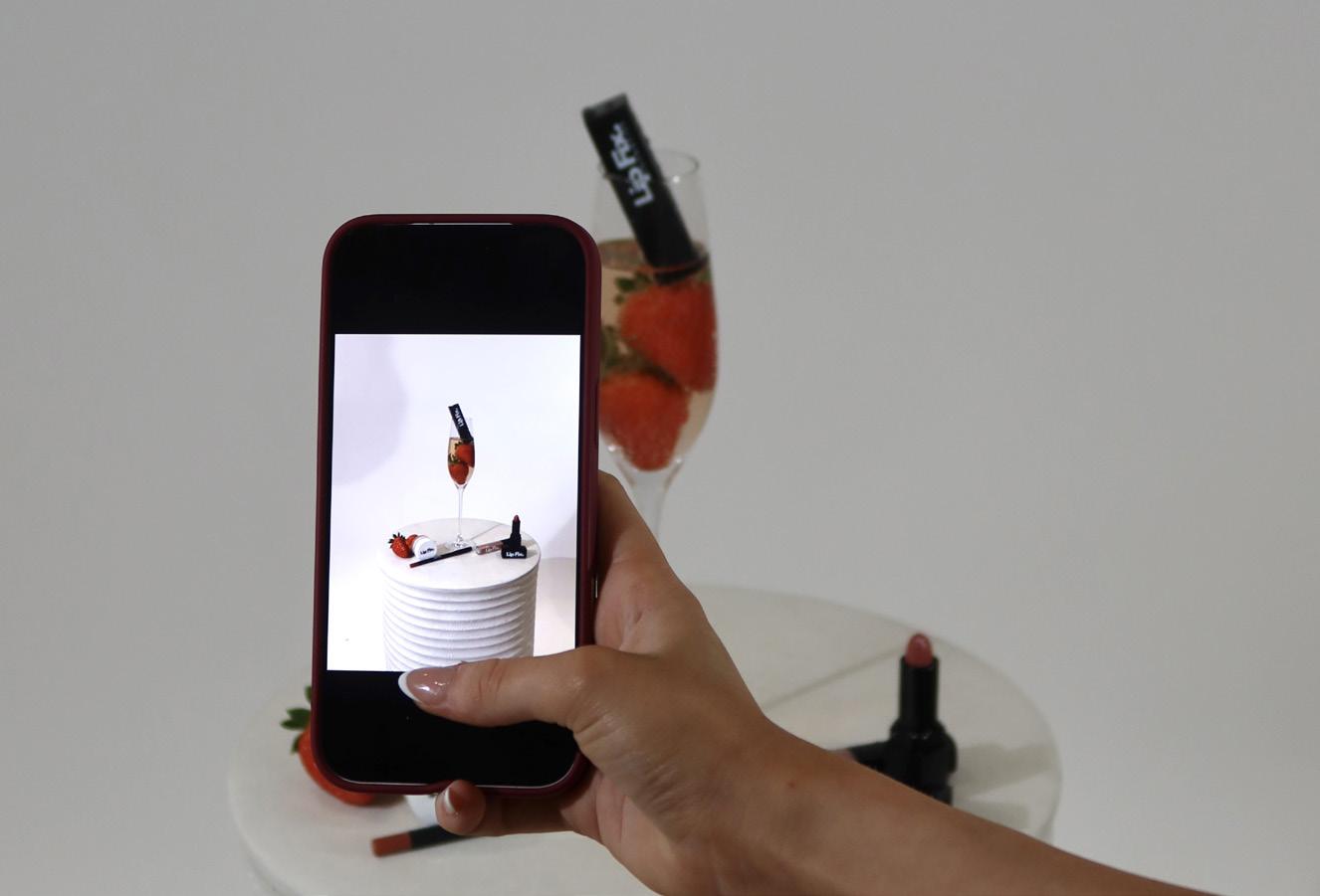 Whilst models were getting ready, I captured some behind the scenes content and whilst there was some spare time, I set up some LipFix products on the white backdrop with disco balls, to capture some Christmas shots. Grace let me do my own thing with this as it was just some simple shots for the brands social media.