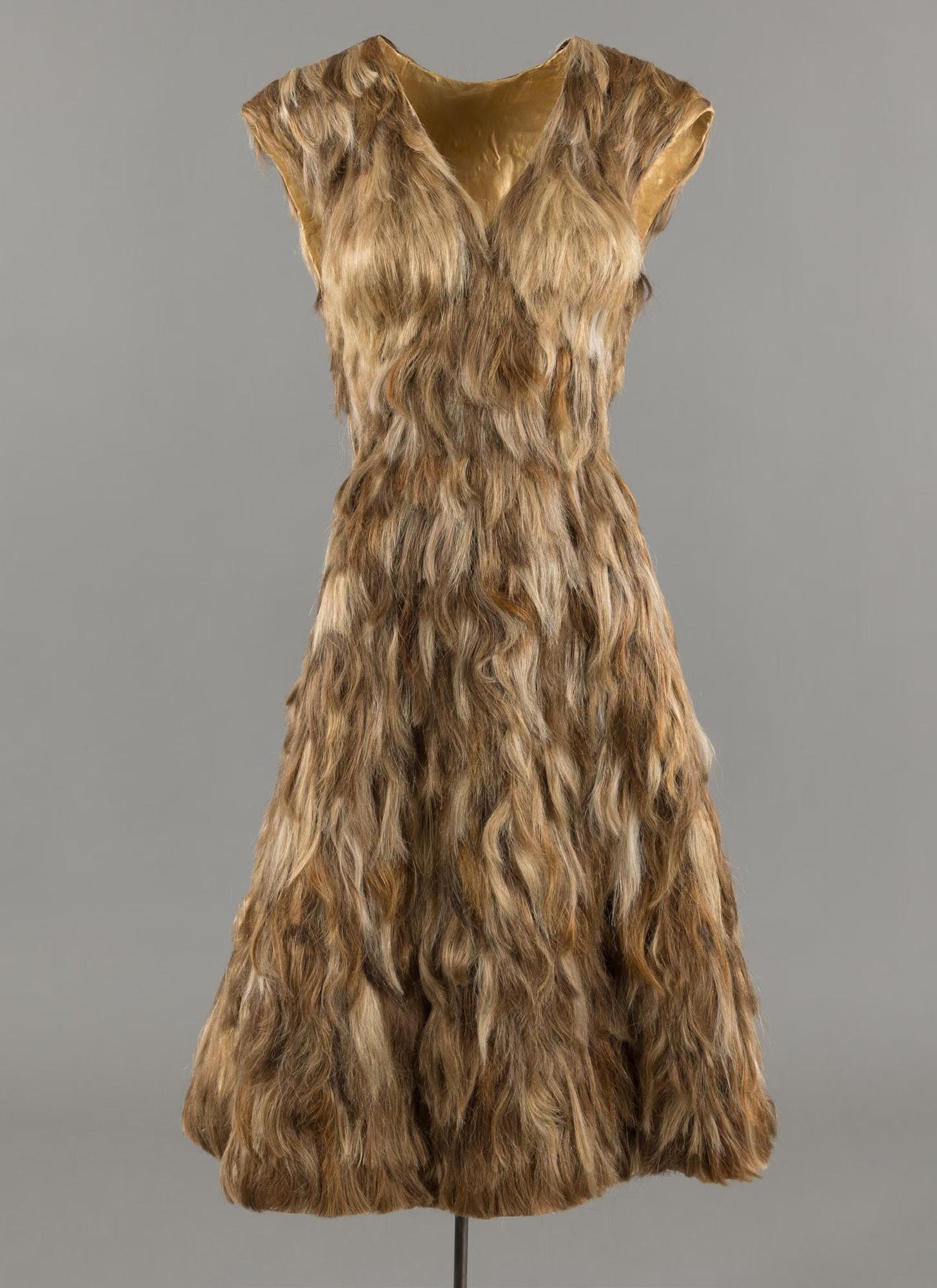 There is a short, reddish-brown dress by multidisciplinary artist Jenni Dutton made from hair, which Steele had created for the show. Hair can be “very freaky for people, especially if it’s in the wrong place,” she says, before offering a psychosexual, Freudian interpretation of the dress’s hypothetical wearer as signalling, by clothing themselves in nothing but hair, that they want, in fact, to be naked. Most people, it’s fair to say, absolutely don’t want to be naked in public, but the question of how much nudity is in fashion at any given moment, how much you or I decide to flash or conceal, has deeper levels to unpack. The rise of nude fashion now, says Steele, may be a response to Ozempic moving the needle back on body positivity, as well as carrying a strong political charge against authoritarianism.