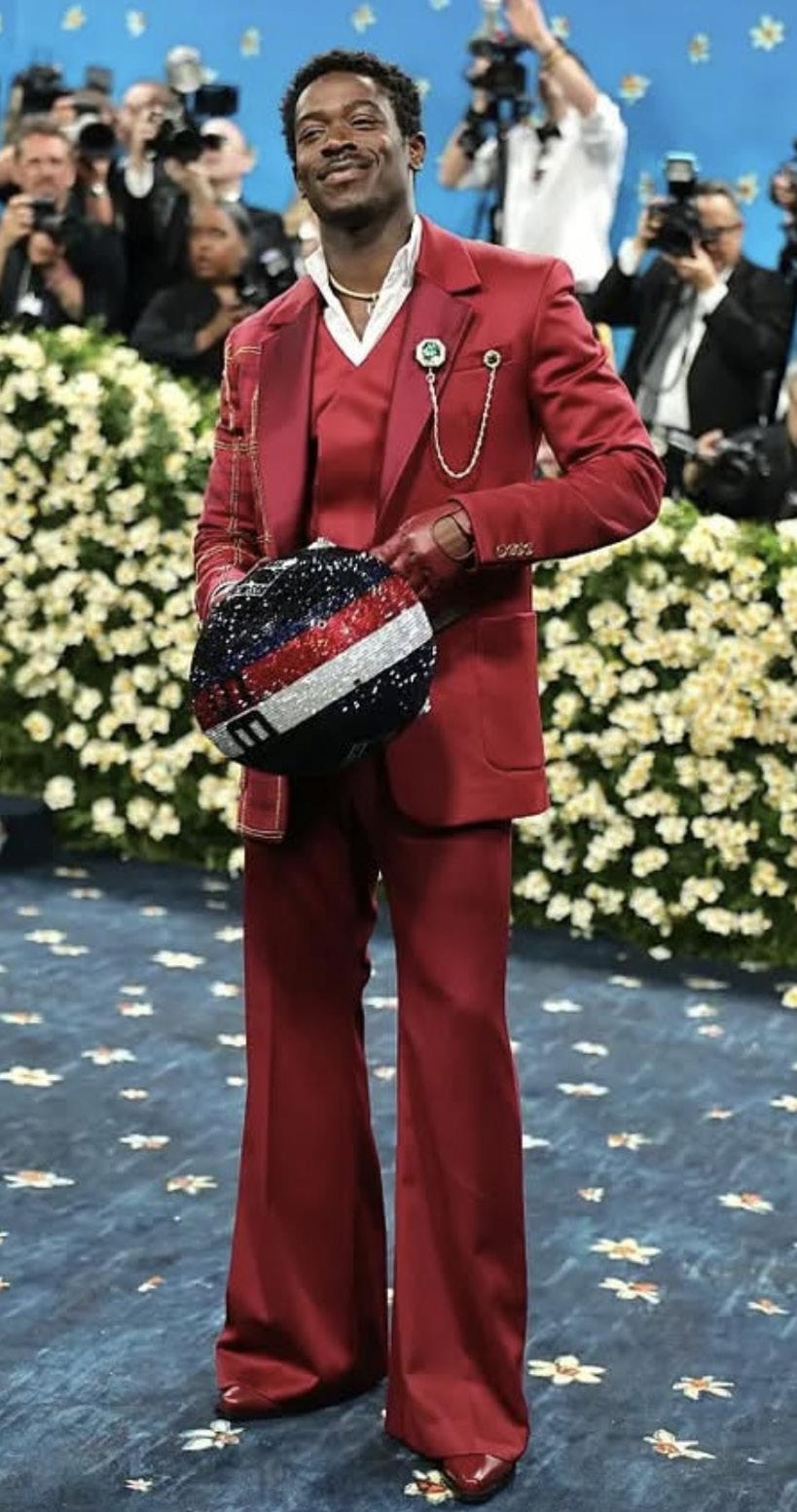 Grande’s wearing “the look she’s been most excited about”: a one-shouldered ballgown originally designed by Gilbert Adrian for the 1952 film Lovely to Look At. “We bought this piece from Lily et Cie, thanks to the wonderful Rita,” Grande explains. “To now have it in our personal vintage collection, and to wear something made by him on this carpet, feels so emotional and meaningful. Law and I cried many times during this fitting.” It may not seem an obvious nod to Glinda – black and dense with ruffles – but Grande says it reflects the darker tones of the final film. “More mature, more emotional,” she adds. “It still feels like an extension of Glinda’s story arc. We’re just telling a different part of her story.”