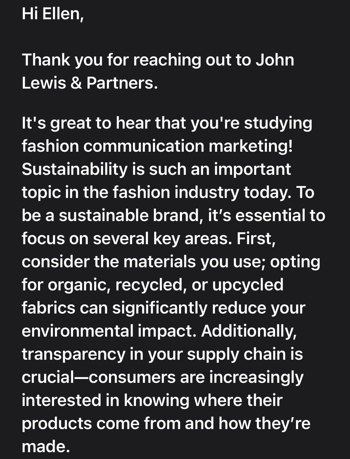 I contacted some different brands to ask for their thoughts on sustainability and how they push to be sustainable brands. Here are their responses: