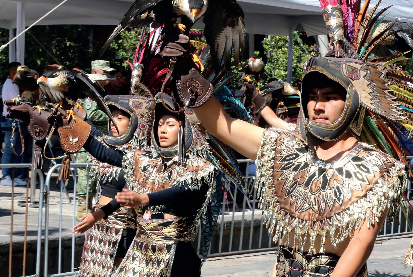 ORGULLO. Portando águilas, símbolo del Centro Escolar Morelos, alumnos marcharon ataviados como danzantes aztecas.