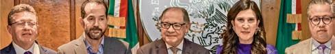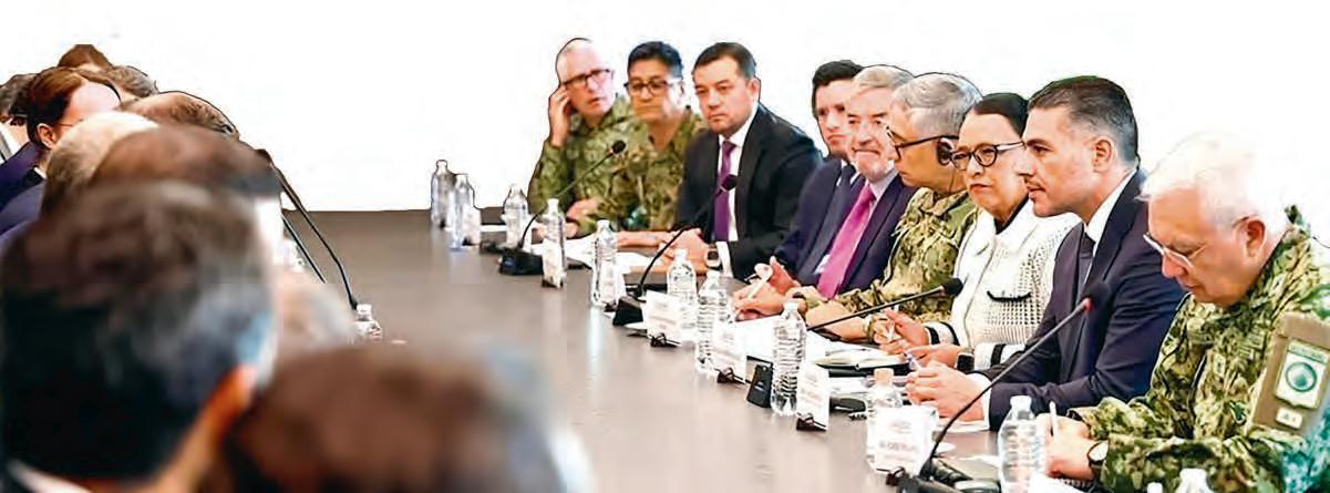 Gobernación, Rosa Icela Rodríguez, el general de defensa Ricardo Trevilla, el almirante Secretario de la Secretaría Marina Ricardo Raymundo Pedro Morales Ángeles, Pablo Vázquez de la Secretaría de Seguridad Ciudadana de la CDMX, Gerardo Escamilla de la Secretaría de Seguridad de Nuevo León, Roberto Velasco Ávarez y Juan Ramón de la Fuente, representantes de Secretaría de Relaciones Exteriores; Rodrigo Martínez-Celis Wogau y Gabriela Cuevas, representante de México ante la FIFA para el Mundial de 2026.