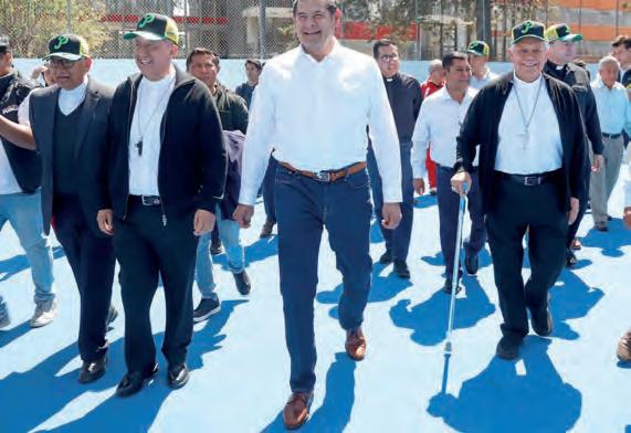 SEMINARIO. El gobernador Alejandro Armenta y el arzobipo Víctor Sánchez inauguraron la rehabilitación de las canchas deportivas de la institución religiosa, mientras se desarrollan otros proyectos como la construcción del frontón y un sistema de captación pluvial LOCAL P. 3