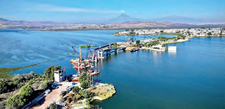 VALSEQUILLO. Con perforaciones de hasta 60 metros de profundidad, para edificar 28 pilas de concreto de gran capacidad, cabezales y trabes de hasta 70 toneladas, el Gobierno estatal avanza en la construcción del Puente de la Transformación sobre el lago, que reducirá los tiempos de traslado a nueve municipios LOCAL P. 4