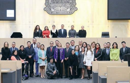 COMPARECENCIA. La titular de la Fiscalía General del Estado, al centro, junto con los integrantes del Poder Legislativo local, donde dio detalles del trabajo realizado durante el primer año de Gobierno de Alejandro Armenta Mier.