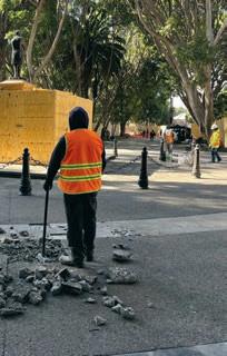 Afirmaron que sus ventas cayeron entre un 50 a 60 por ciento desde que comenzó la remodelación de este conocido parque, que luce rodeado de tablones que impiden el paso de posibles consumidores LOCAL P. 5