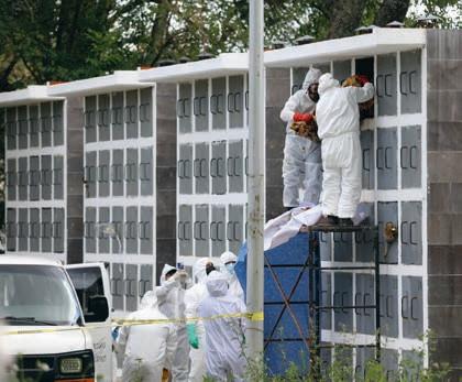 RECUPERADOS. En el centro de resguardo temporal del Panteón de la Piedad de esta ciudad, se extrajeron los restos de personas reconocidas por sus huellas dactilares.