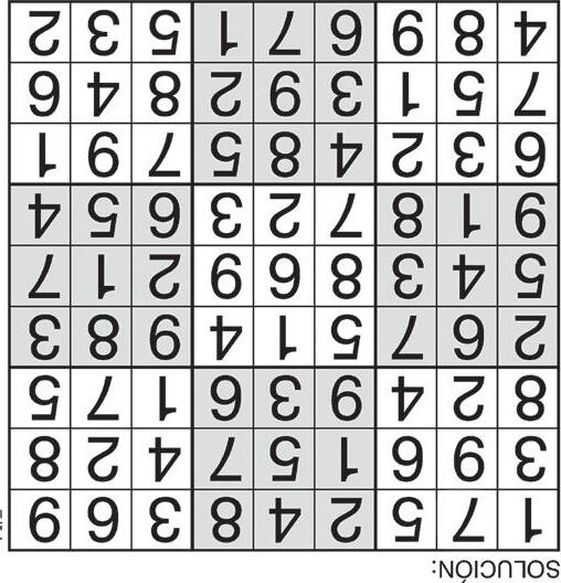 el recuadro de tal manera que cada fila, columna y cuadro de 3x3 tengan los números del 1 al