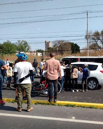 IMPRUDENCIA. El conductor de la camioneta negra, no respetó los cierres de las vialidades por manifestación de ciclistas y los arrolló, a dos días del asesinato de un menor de edad.