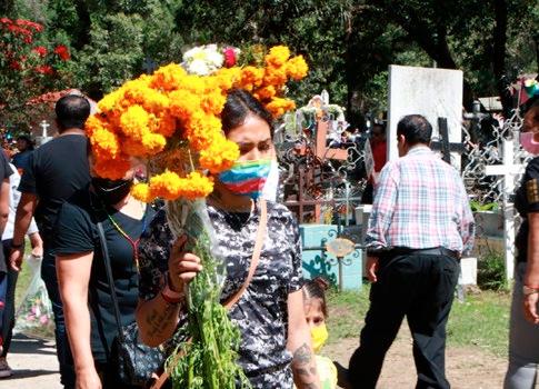 Decenas de miles de personas acudieron al Panteón Municipal para visitar a sus difuntos, por lo que llevaron las tradicionales flores de la temporada: cempasúchil y terciopelo.
