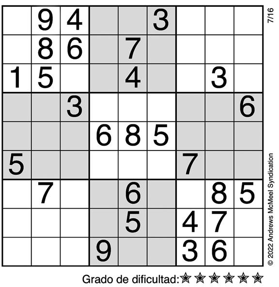 Complete el recuadro de tal manera que cada fila, columna y cuadro de 3x3 tengan los números del 1 al 9.