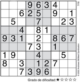 Complete el recuadro de tal manera que cada fila, columna y cuadro de 3x3 tengan los números del 1 al 9.