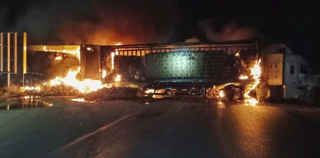 En Twitter se compartieron videos de los vehículos incendiados como parte de los bloqueos, entre ellos un tractoca mión a la altura del municipio de Cuau htémoc, Zacatecas.