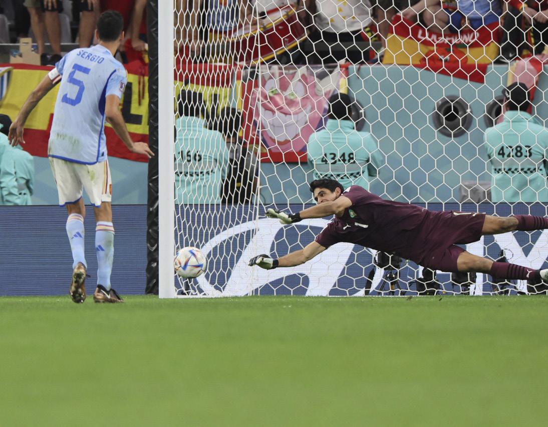 El partido se definió en la tanda de penales, con la heróica actuación de Yassine Bounou, al atajar dos de los tres penales de la Roja y dejar en el camino a España, con soberbias definicio nes de Sabiri, Ziyech y Hakimi que le dieron la