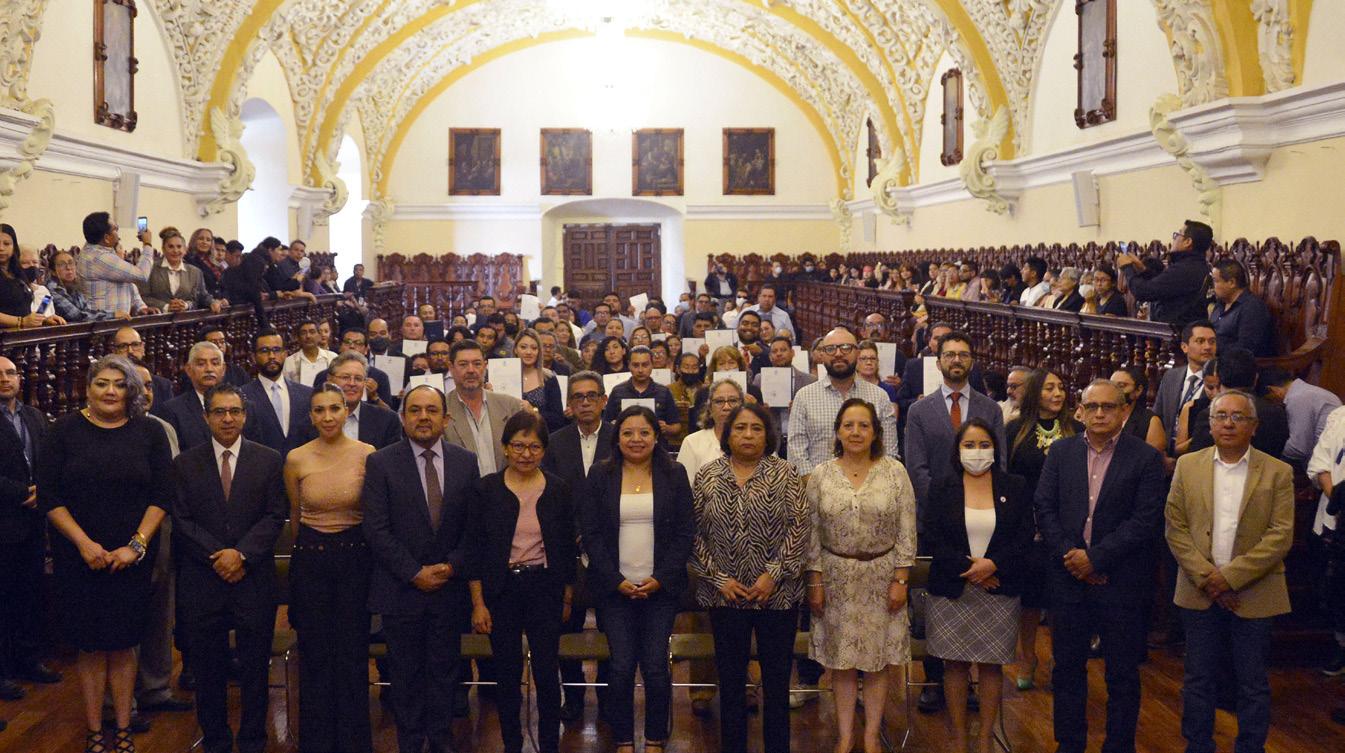En esta ceremonia, la rectora de la Benemérita Universidad Autónoma de Puebla (BUAP) reconoció la intervención del personal administrativo en la reforma a la Ley de la BUAP, la cual por primera vez se sometió a consulta y participaron más de 53 mil universitarios.
