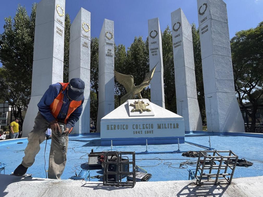 PATRIA . Todo listo en el monumento a los Niños Héroes previo a la ceremonia conmemorativa por el 175 Aniversa rio de la Gesta Heroica de la Batalla de Chapultepec. Trabajadores ultimaron detalles para este magno evento.