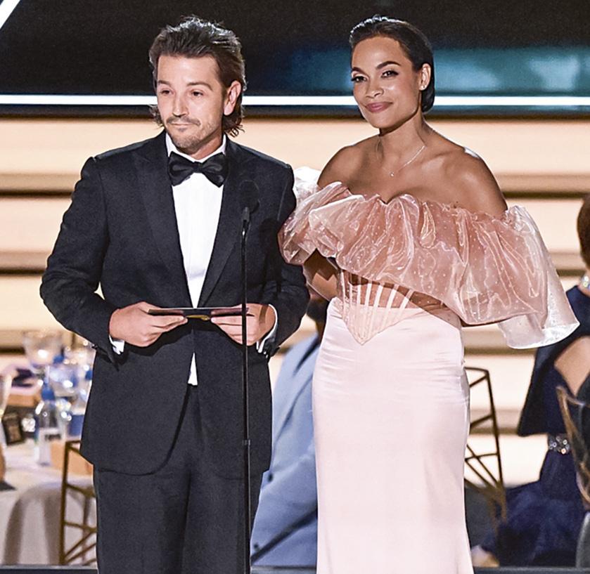 Un momento muy especial fue cuando la pantalla la llenaron dos Stormtroopers del universo de Star Wars, y a ello le sucedió la aparición de Diego Luna, quien en compañía de Rosario Dawson presentaron la categoría de Mejor Dirección para una Miniserie o Pe lícula para la Televisión, la cual fue conquis tada por Mike White gracias a su serie White Lotus, este momento se repitió de inmediato, pues el realizador volvió a subir al podio para tomar su segundo Emmy en la categoría de Mejor Guión para una Miniserie o Película para la Televisión, por la misma producción.