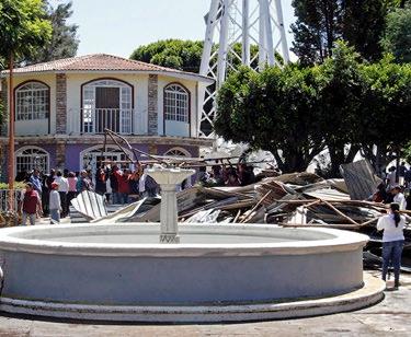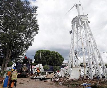 A pocas horas de ser inaugurado por la alcaldesa Norma Layón, un gigantesco tanque de agua ubi cado en San Baltazar Temaxcalac, en Texmelucan, se desplomó causando que dos personas perdieran la vida. PAG .7