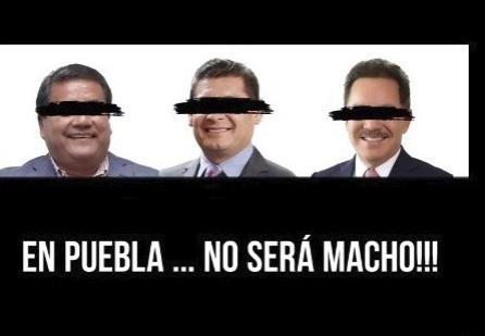El equipo de precampaña de Claudia Rivera subió de tono la contienda interna de Morena, pues ahora presentó un nuevo videoescándalo en redes sociales en el que al final dice:” ni Julio (Huerta) ni Armenta (Alejandro), ni Nacho (Mier)” con la foto de los mencionados cubriendo sus ojos y la leyenda “En #Puebla…no será macho!!!”. PAG. 3